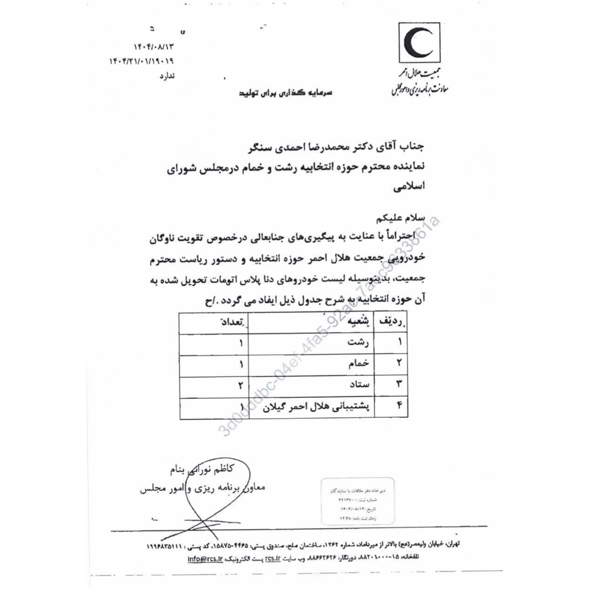 با پیگیریهای مستقیم و مستمر محمدرضا احمدی سنگر، نماینده مردم رشت و خمام در مجلس، تعداد پنج دستگاه خودروی دناپلاس اتومات به ناوگان عملیاتی جمعیت هلالاحمر استان گیلان افزوده شد.